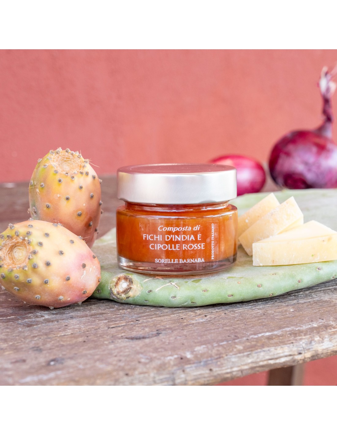 Prickly pears surround our land and grow wild among the dry stone walls. Sweet and juicy, they feed on the hot Apulian summer sun and cannot be missed on the table. Hence the idea to create a sweet and sour compote with added red onion, to pair with cheeses and serve on any occasion.