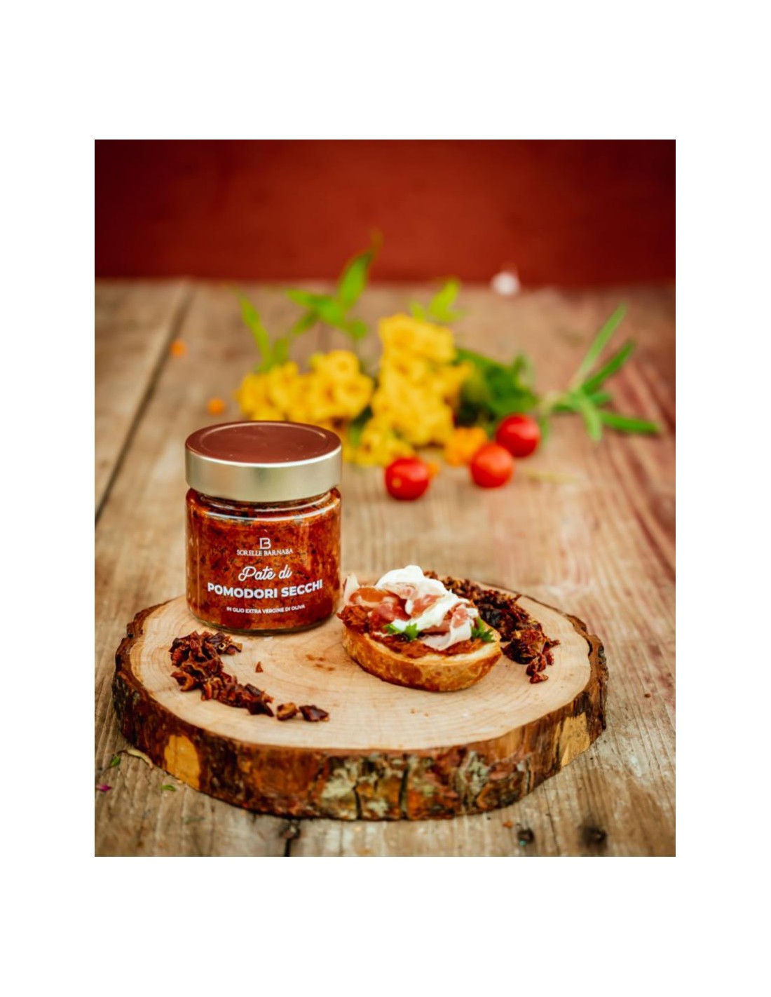 Dried tomato pate in evo oil is a perfect condiment to enrich your dishes. Great to spread on crostini or to give your dishes a boost thanks to its strong flavor.